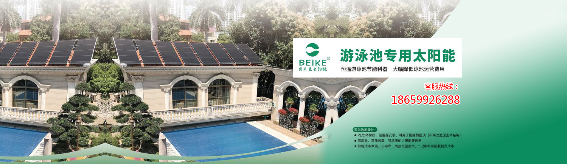 云南高級(jí)別墅區(qū)私家游泳池太陽能恒溫加熱系